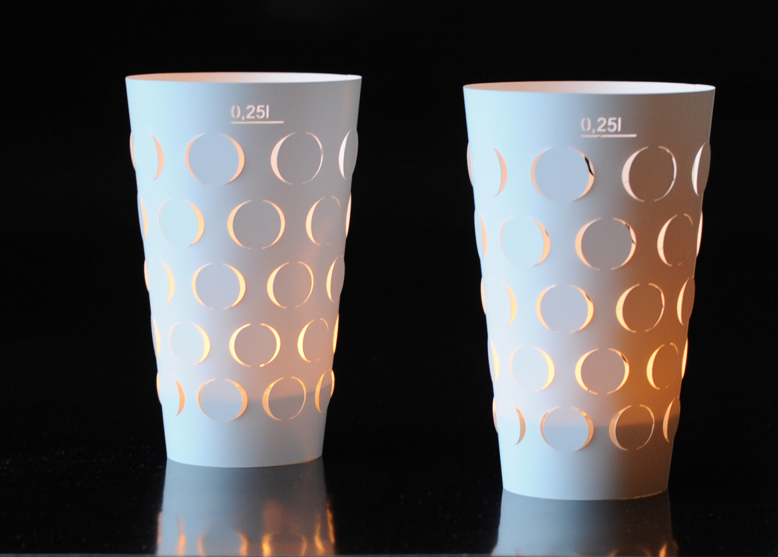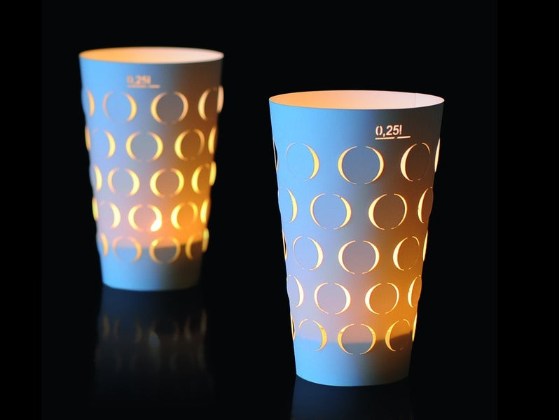 Un verre à bougies chauffe-plat disponible dans le commerce ou un verre Dubbe de 0,5 L ou 0,25 L peut être utilisé comme photophore.