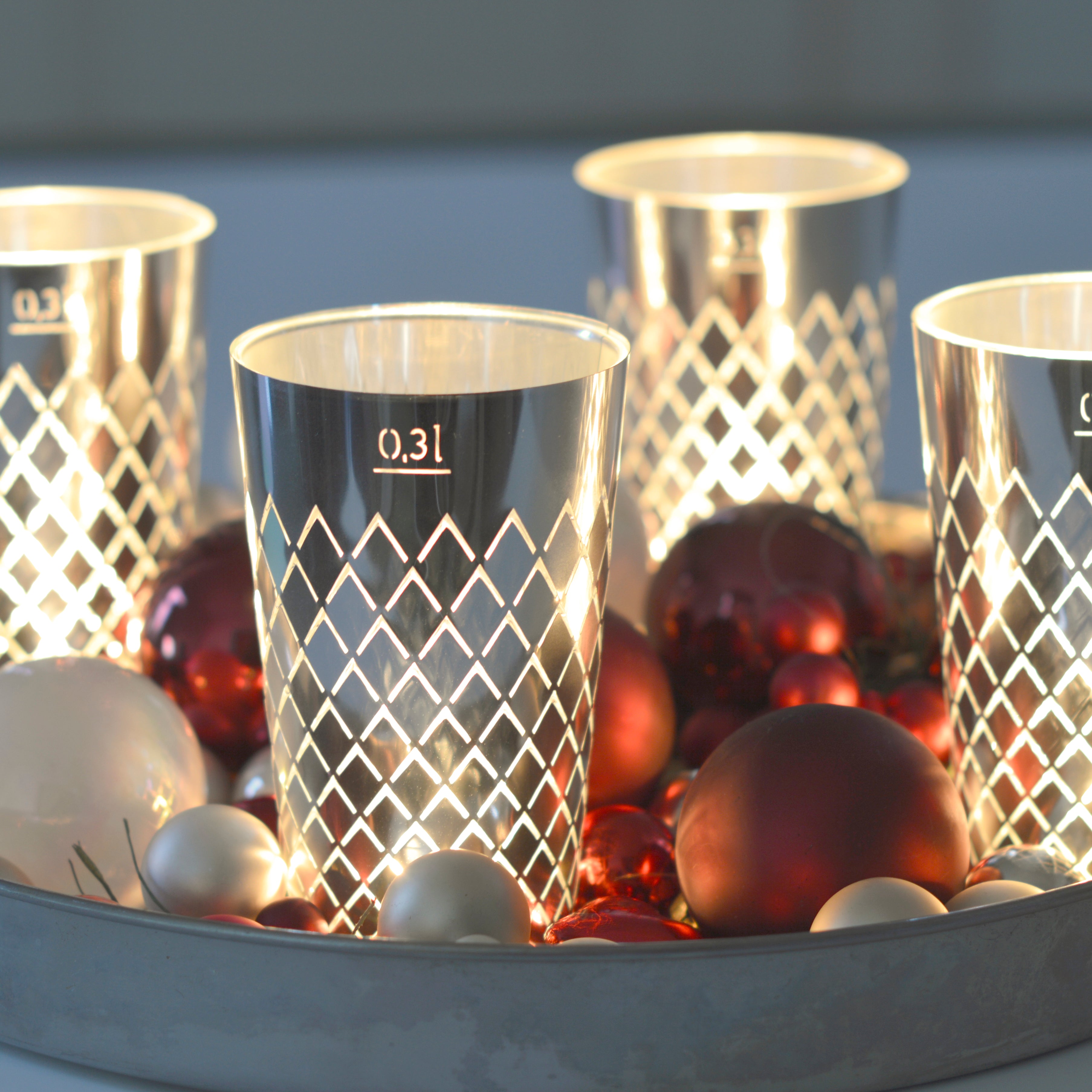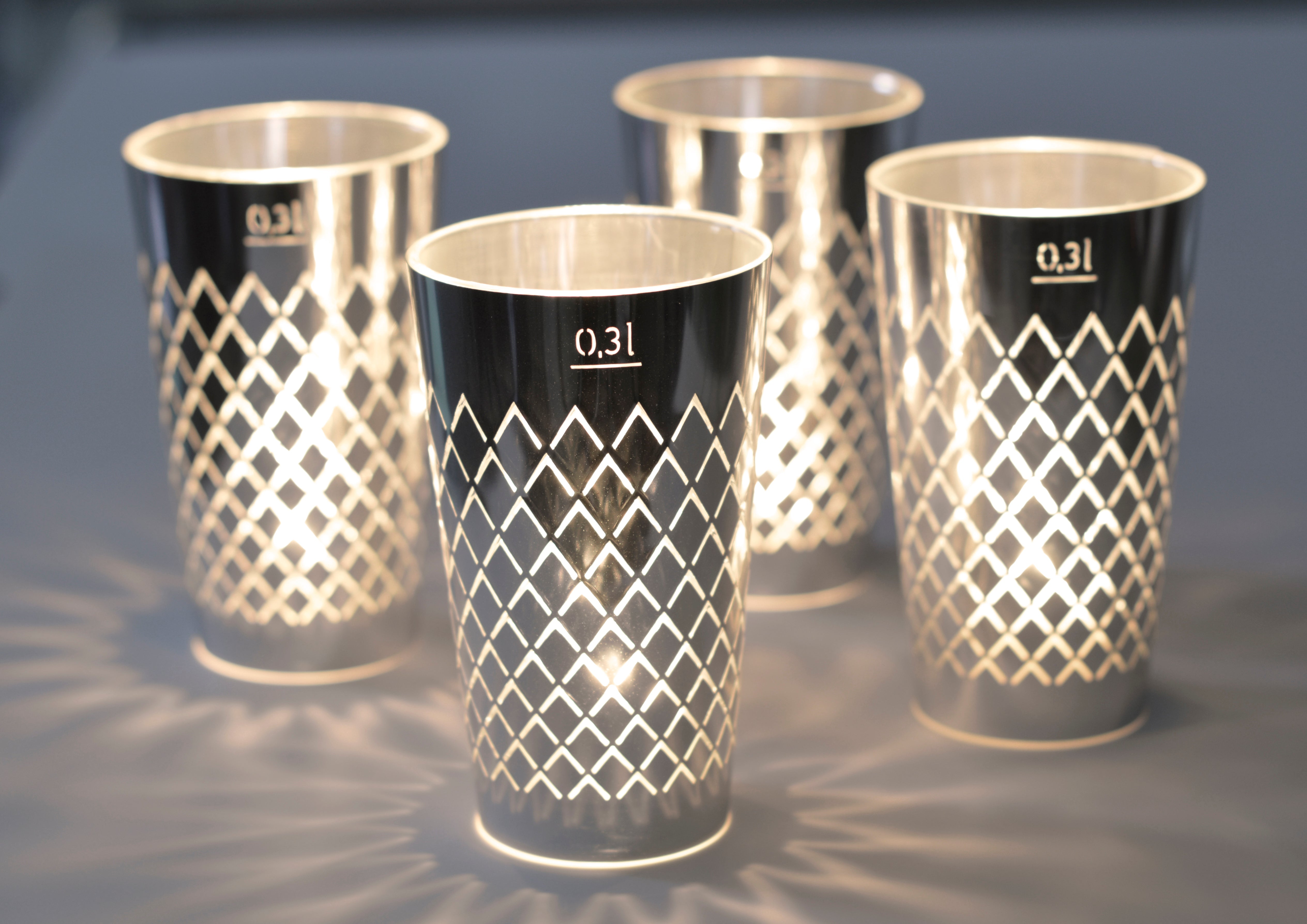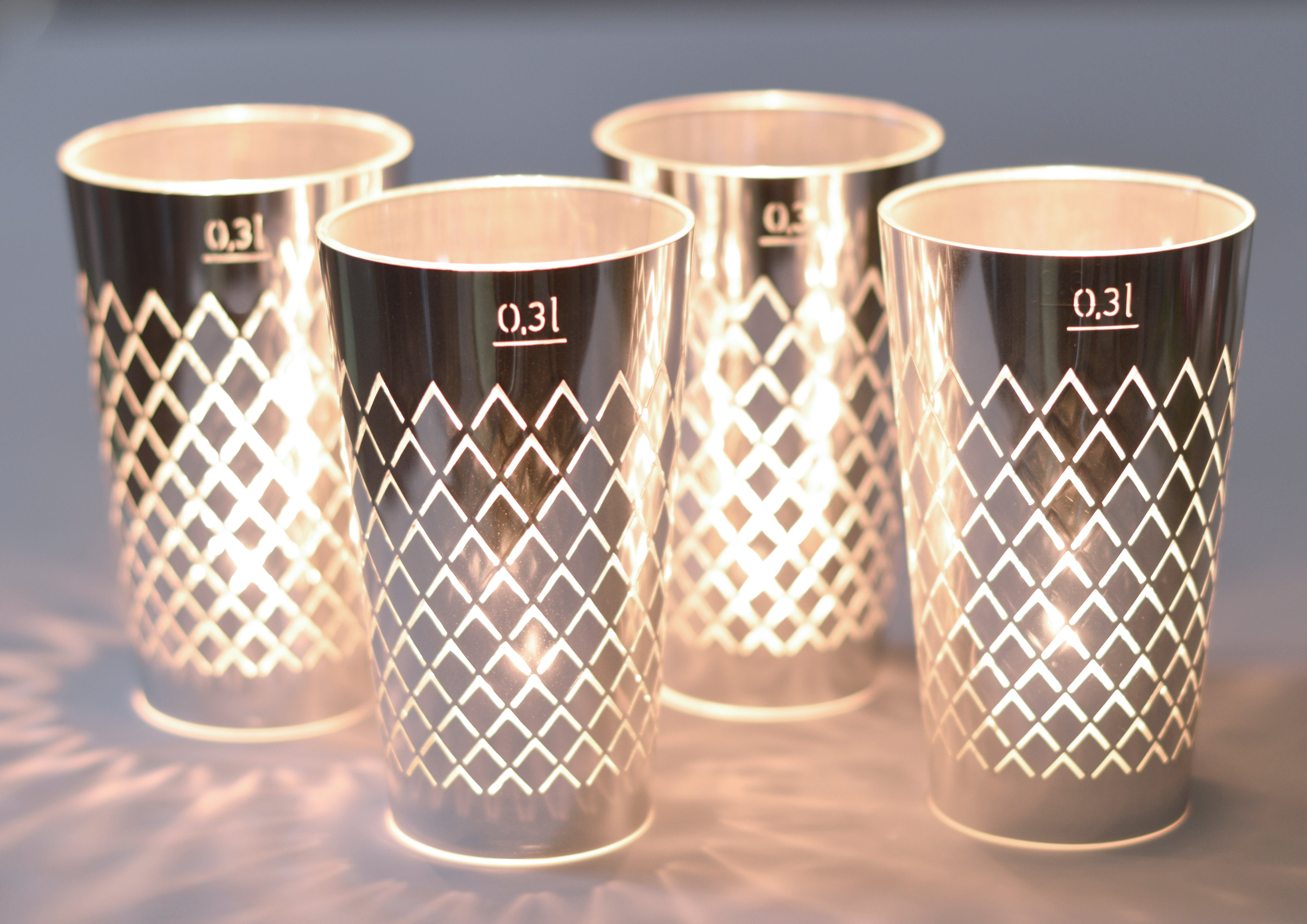 Geripptes Licht 4er Set silber